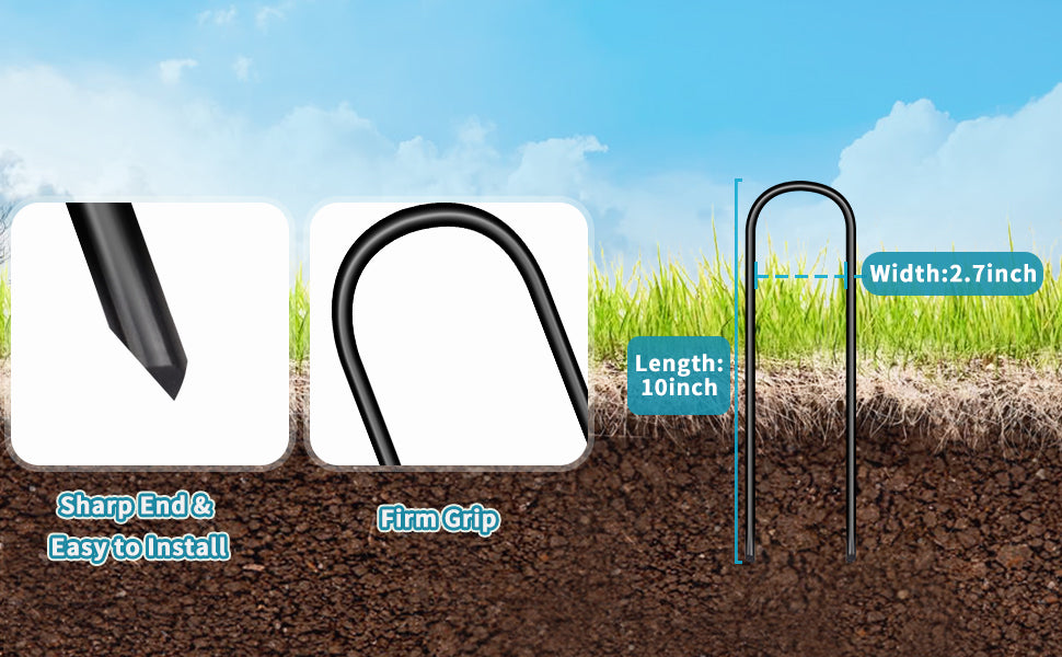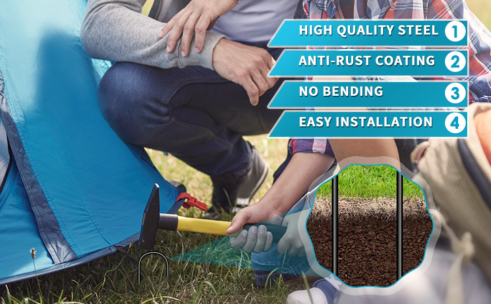 - EASY TO INSTALL:Sharp ends makes the Trampoline Stakes Anchors High Wind easy insert into the ground and save effort,Strong steel for dirt, grass, sand, hard clay.