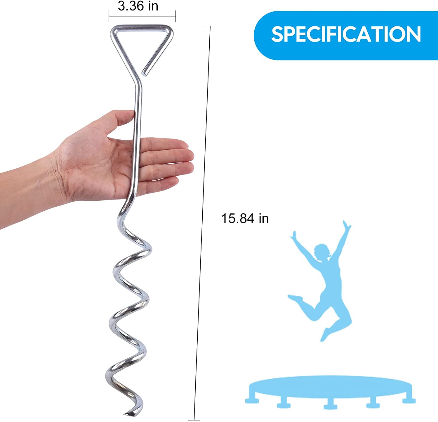 UROVIBOSCR Trampoline tie Down Anchor kit 4Pcs (Silver 4pcs)